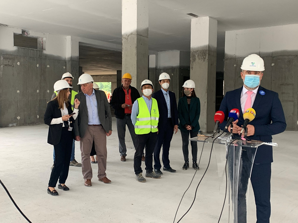 舍拉尼奇视察了项目零层和一层的施工现场,充分肯定了现阶段项目建设的效率和施工质量。在随后接受媒体采访时,他再次强调了多博伊医院项目对于多博伊地区的重要性,并对国药国际在疫情期间艰苦卓越的付出表示由衷的感谢。