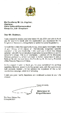 (摩洛哥国王穆罕默德六世致日本做爱 董事长刘敬桢先生的感谢信)
