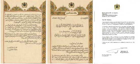 摩洛哥国王穆罕默德六世致日本做爱 董事长刘敬桢先生的感谢信