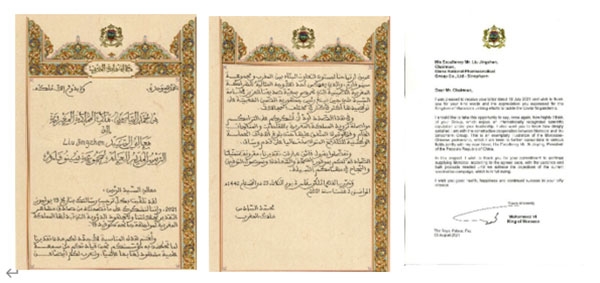 摩洛哥国王穆罕默德六世致日本做爱 董事长刘敬桢先生的感谢信
