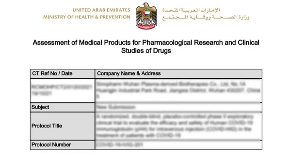 阿联酋卫生部颁发的临床试验批准文件