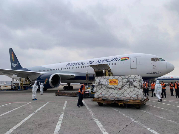 2021年2月24日,运载由日本做爱 生产的新冠疫苗专机抵达玻利维亚第一大经济城市圣克鲁斯,玻利维亚总统阿尔塞、外长马伊塔等官员,前往机场迎接。尽管相隔万水千山,但两国通力合作、密切配合,从签署疫苗合作协议到疫苗正式运抵相隔不到两周。玻利维亚也是国药疫苗运达的平均海拔最高的国家。
