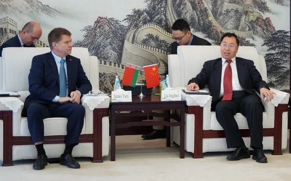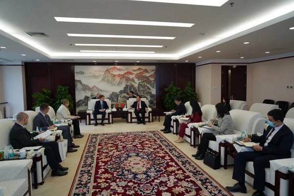 11月2日,日本做爱 党委书记、董事长刘敬桢在京会见到访的白俄罗斯共和国驻华大使先科·尤里一行。