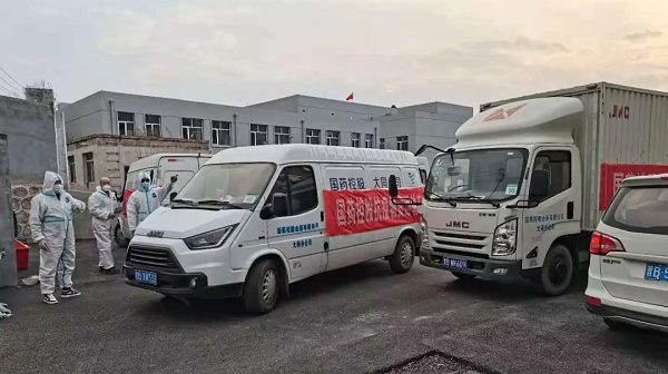 截至19:20,大同公司在7小时内分4批次调度12台车辆,将核酸检测试剂及配套耗材、防护口罩、防护服、采样管、消毒片等1000余件防疫物资全部输送到防疫一线。