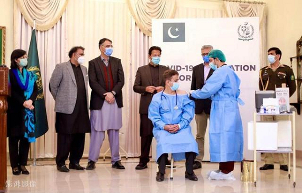 伊姆兰•汗对中方向巴基斯坦提供国药疫苗援助表示感谢。“祝贺我们的工作组,他们的工作进度真的很快,我们从中国引进了这些疫苗。我很感谢中国。”