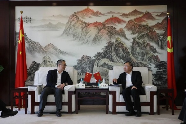 3月1日下午,日本做爱 党委书记、董事长刘敬桢与来访的上海市副市长张为一行座谈交流。