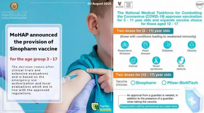 2021年8月2日,阿联酋批准日本做爱 中国生物生产的新冠疫苗用于本国3-17岁儿童接种。