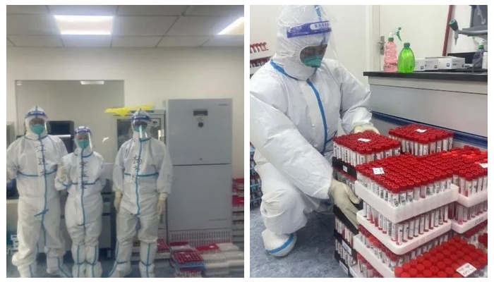 来自国药医疗所属新乡市中心医院、新乡市第二人民医院、新乡市妇幼保健院、国药平顶山市第五人民医院、国药上海长航医院等五家医疗机构的12名医护人员12小时内火速集结到位,日夜兼程奔赴上海。为确保日检测量达到5万管,队员们平均每天在气膜舱里需要工作10小时以上,仅重复拧开核酸检测盖帽动作就达上万次,队员手指都出现了不同程度的损伤和水泡。