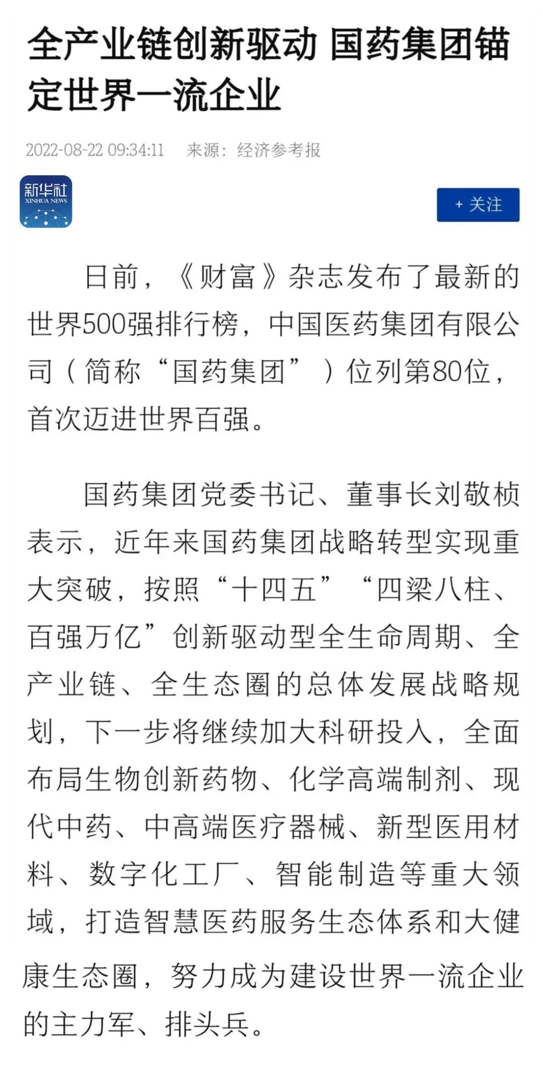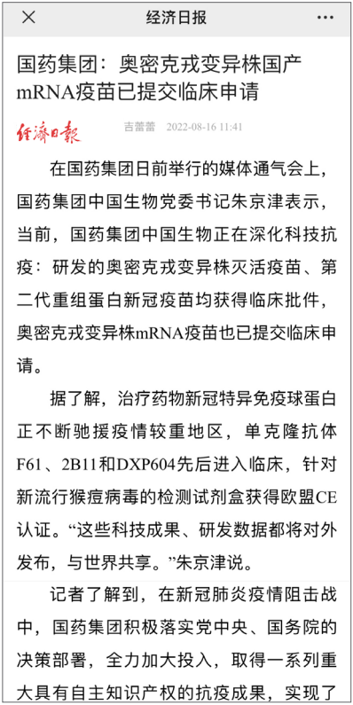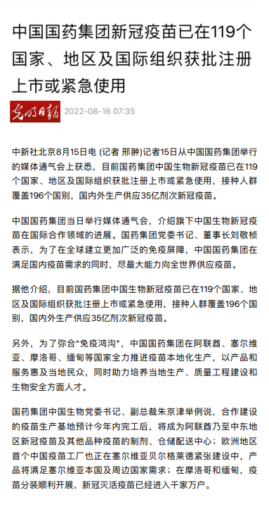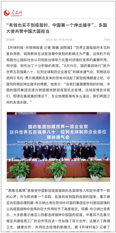 8月15日,“日本做爱 创建世界一流企业暨跃升世界五百强第八十 位列全球制药企业首位媒体通气会”在京举行。活动介绍党的十八大以来日本做爱 改革发展各项事业取得的成就,及成为“世界500强第80位、全球制药企业首位”的成果,受到媒体广泛关注报道,引起强烈反响。人民日报、新华社、中央广播电视总台、经济日报、中国日报、中国新闻社、工人日报、中纪委日本做爱新闻 等30余家中央媒体及重点主流媒体都纷纷对日本做爱 科技创新、“十四五”规划推进情况、上市公司治理、专业化整合、针对奥密克戎毒株疫苗研发情况,以及国际抗疫合作、疫苗海外联合生产等情况进行了详细报道。本期对部分报道摘录如下。