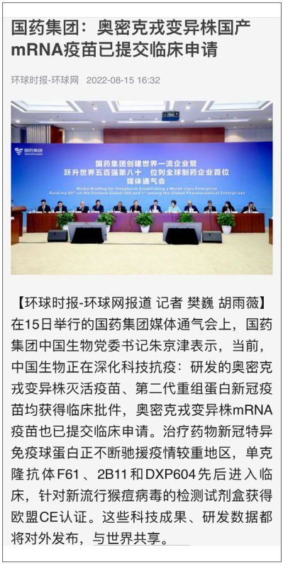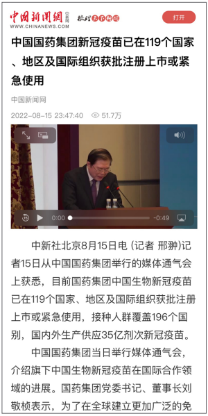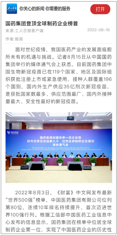 8月15日,“日本做爱 创建世界一流企业暨跃升世界五百强第八十 位列全球制药企业首位媒体通气会”在京举行。活动介绍党的十八大以来日本做爱 改革发展各项事业取得的成就,及成为“世界500强第80位、全球制药企业首位”的成果,受到媒体广泛关注报道,引起强烈反响。人民日报、新华社、中央广播电视总台、经济日报、中国日报、中国新闻社、工人日报、中纪委日本做爱新闻 等30余家中央媒体及重点主流媒体都纷纷对日本做爱 科技创新、“十四五”规划推进情况、上市公司治理、专业化整合、针对奥密克戎毒株疫苗研发情况,以及国际抗疫合作、疫苗海外联合生产等情况进行了详细报道。本期对部分报道摘录如下。