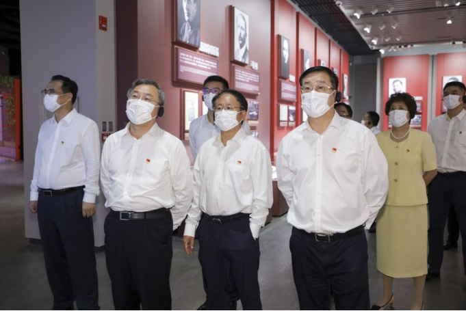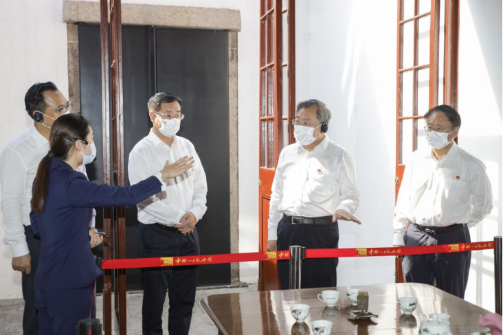 驻足于中共一大会址的实景陈设前,刘敬桢向讲解员详细询问了解一大召开当时当地和与会人员的具体情况,与同行的党员干部就有关史实细节进行深入交流。他指出,101年前在上海租界的这幢小房子里,当时仅有50余名党员的中国共产党,选派13名代表召开了党的第一次全国代表大会,创造了开天辟地的大事变;历经百年风雨沧桑,中国共产党取得了彪炳史册的伟大成就,锻造成为拥有9600多万名党员的世界第一大党,如今恰是风华正茂,必将领导人民实现中华民族伟大复兴的中国梦。