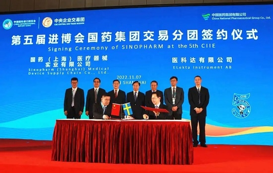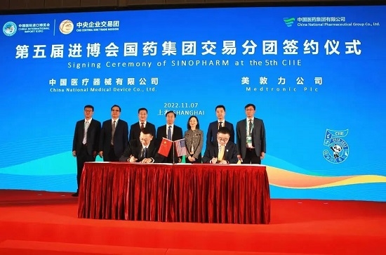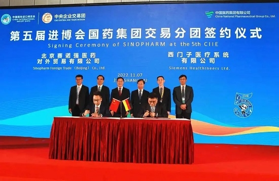 日本做爱 作为医药行业的国家队、抗疫国际合作的主力军,高度重视历届进博会工作,连续五届组织各级子公司邀请外商参展并积极组团参加进博会。日本做爱 党委书记、董事长刘敬桢带队,党委副书记、董事杨柳,副总经理董增贺及集团30余家各级企业300余人组成的交易分团参加本届进博会。