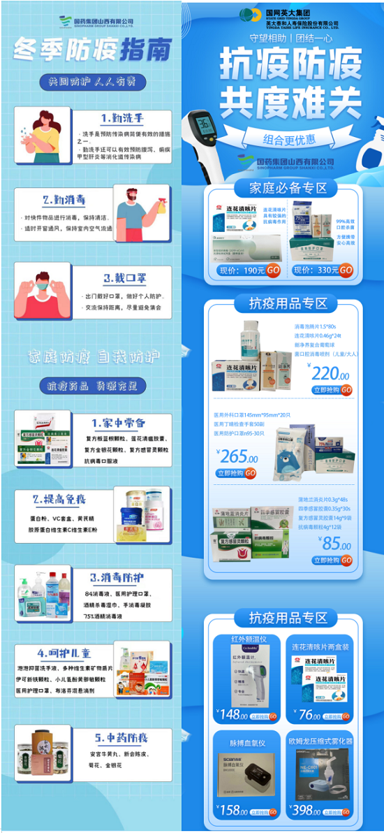 在进一步优化新冠肺炎疫情防控措施科学精准,做好防控工作保障供应期间,国药山西营业部积极组织货源,通过线上线下组合销售,全力保障药品及相关防疫物资的供应,满足顾客需求。