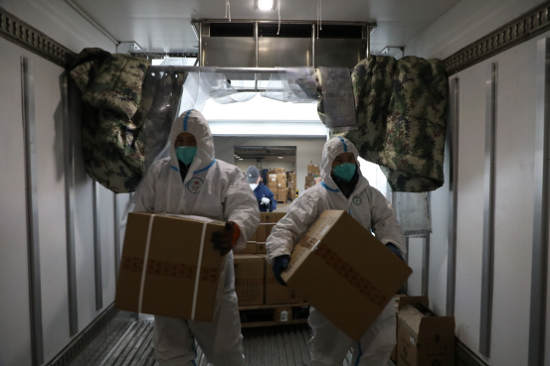 国药新疆向运输车装配药物,准备调运北京